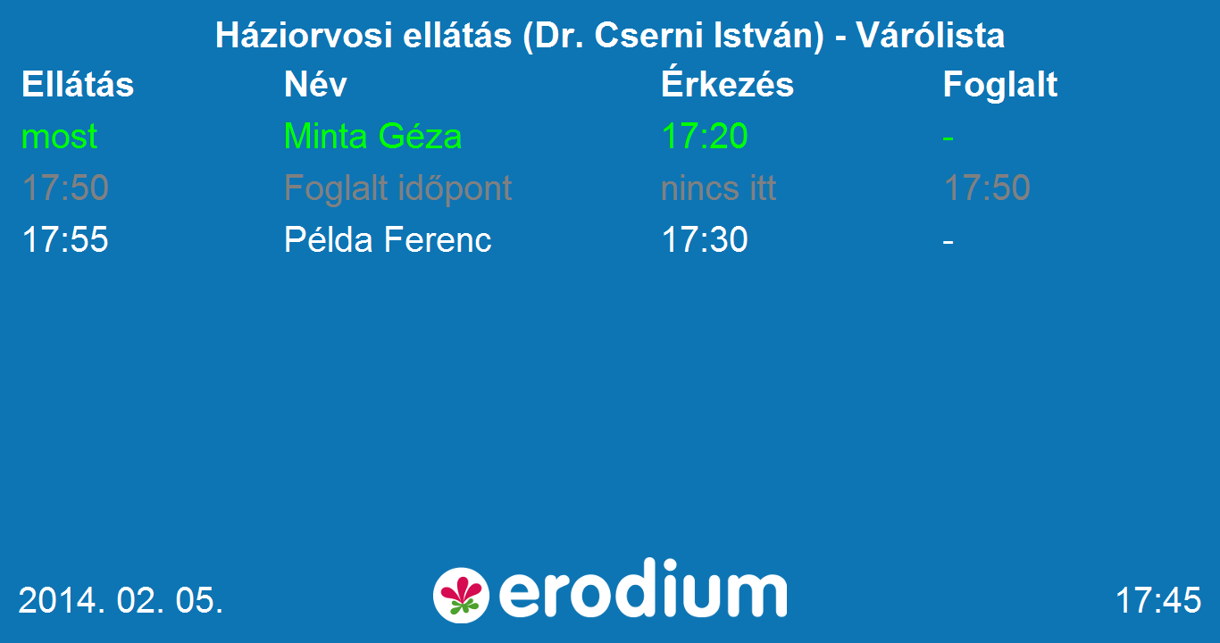 A hívást követően a rendszer megjeleníti az aktuális várólistát, így a további várakozásra kényszerülő páciensek is informálódhatnak a várható további várakozási időről.